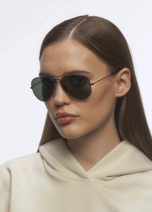 Descripción de la montura: La montura de estas icónicas gafas aviador está elaborada en metal con un elegante pulido que aporta un toque de sofisticación. Su forma de montura es clásica, diseñada para brindar estilo y comodidad.